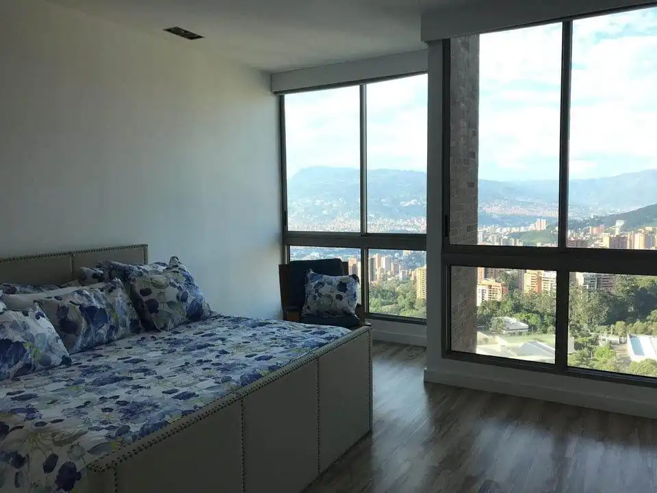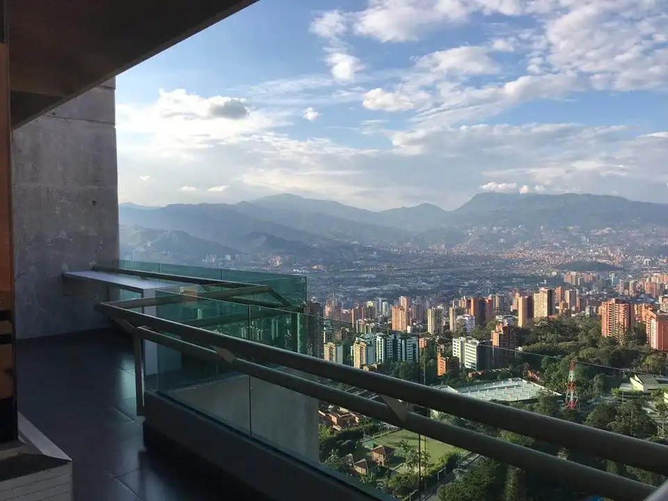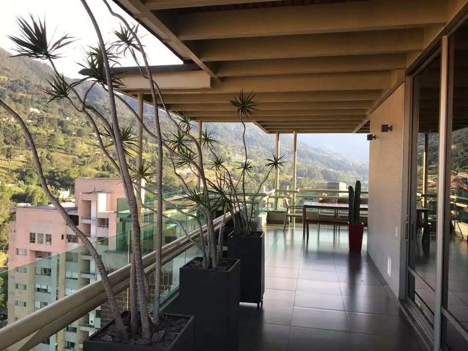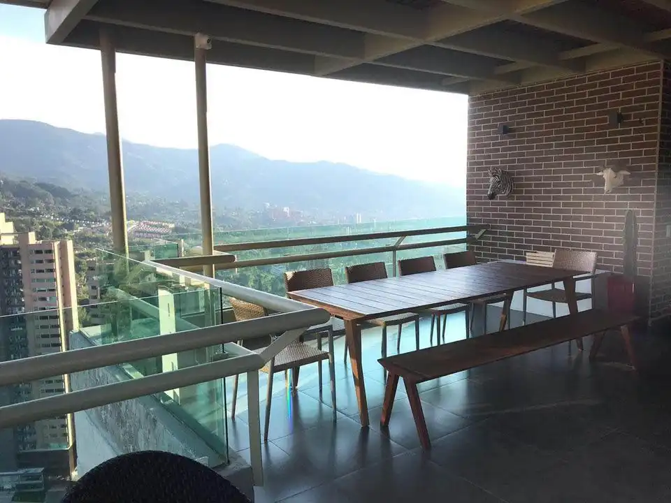 Spectacular duplex penthpuse with panoramic view (city and mountain, 360°) to the whole city. Located in El Poblado in one of the Cantagirones and with a total area of 278.34 m2. The apartment has two parallel parking spaces and a utility room.